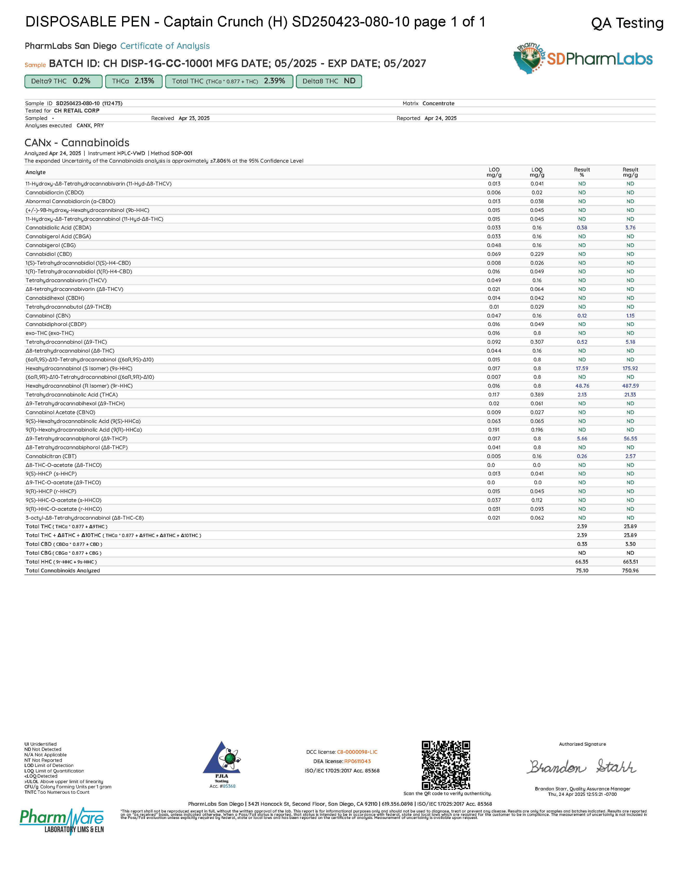 - TOTAL THC: 2.46%